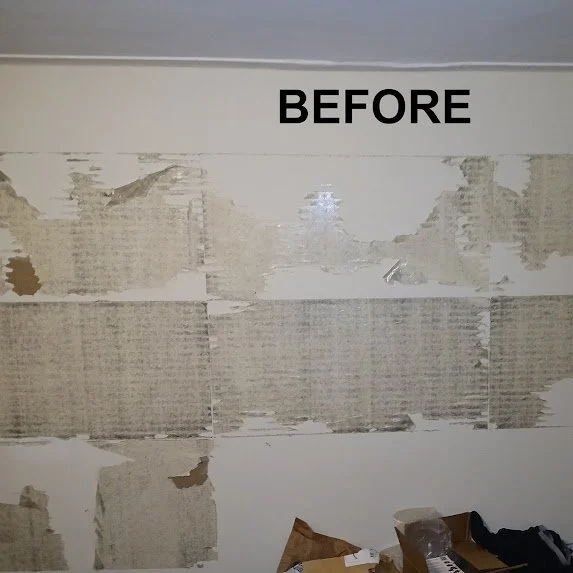 At New York Wall Repair, we recently restored a wall in NYC that had been damaged by heavy-strength adhesive. The wall originally had soundproofing panels installed with industrial glue, and during removal, the surface was left torn and uneven.