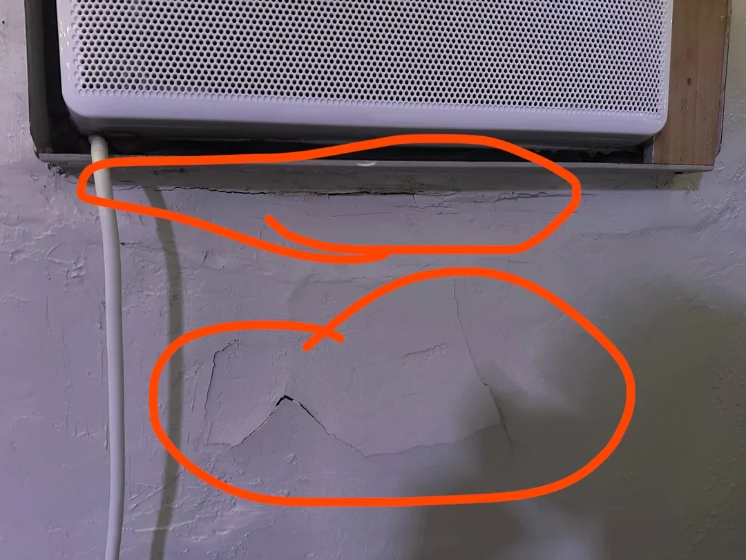 Stains, peeling paint, or bubbling wallpaper around the AC