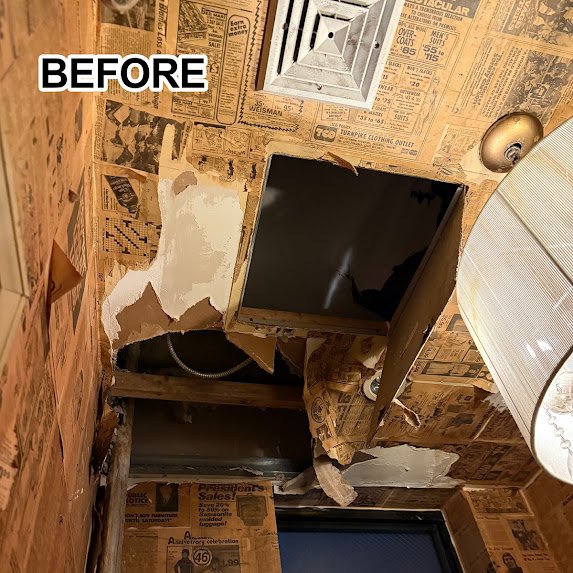 🚿 Bathroom Ceiling Repair with a Creative Twist – Manhattan Restaurant Project 🛠️